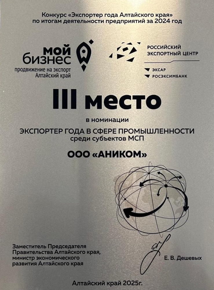 • В 2016 году ООО «АНИКОМ» вошло в топ-15 компаний по экспорту в рейтинге "ТехУспех-2016.